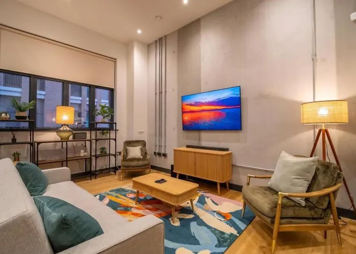 Villa Bauhaus By The Heim offre aux clients un four, de la vaisselle et de la verrerie dans une cuisine équipée. Vous pourrez dîner à The Marble Arch, situé à 10 minutes en voiture du bâtiment. La gare la plus proche est la gare Deansgate, à 2 km de cette villa de 3 chambres.